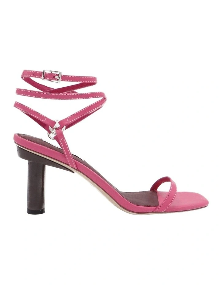 The Jules Heel is the ultimate cool 90’s inspired heel. Thin ankle wrap leather upper straps with a buckle closure. 8cm Heel Height
