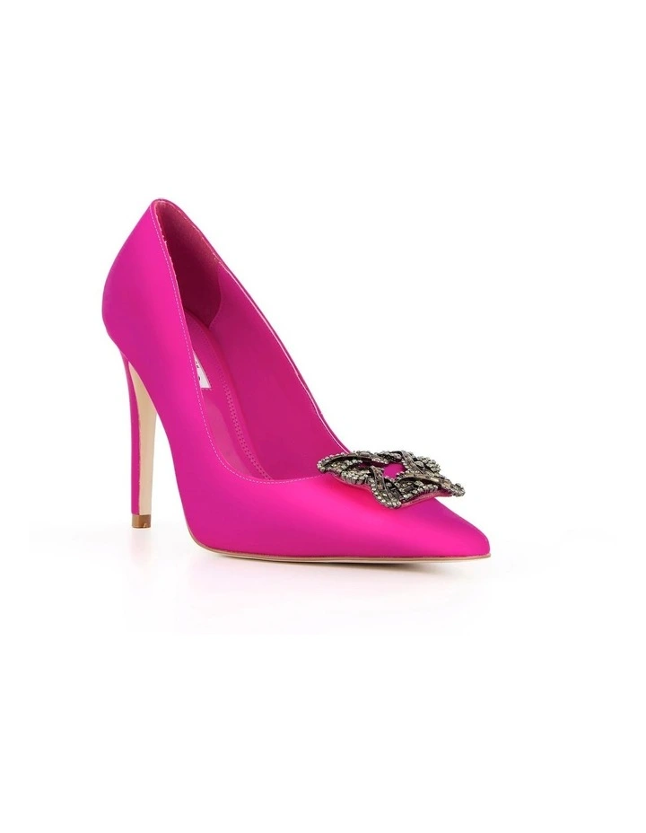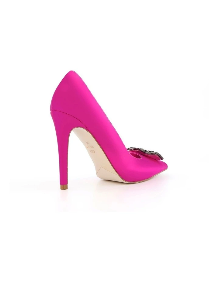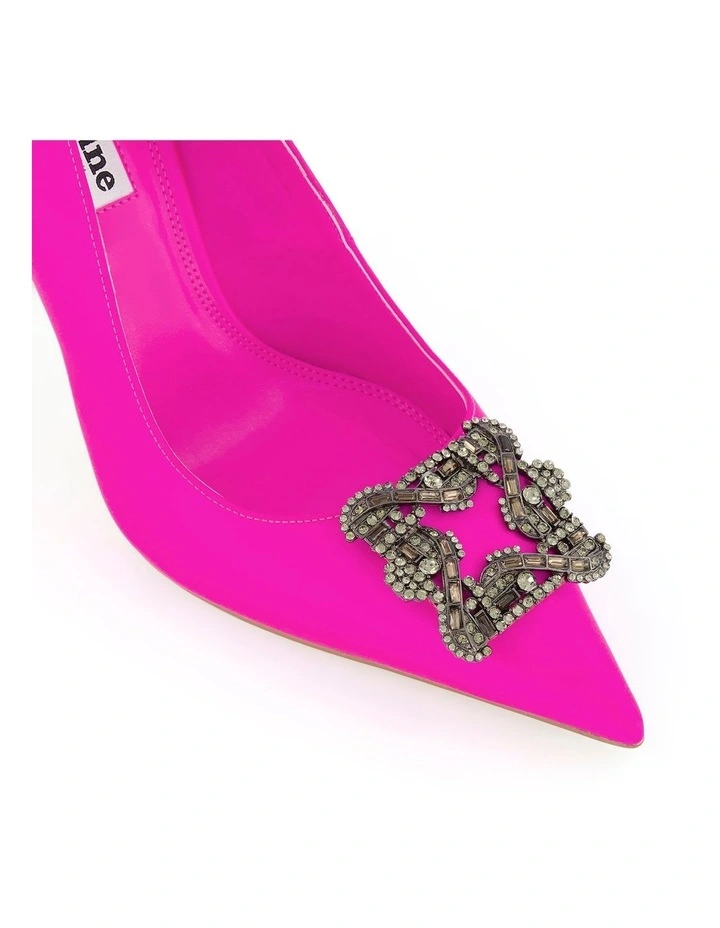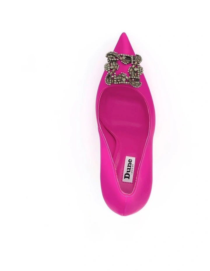 A truly elegant court shoe adorned with a jewelled square brooch. Styled with a classic pointed toe and feminine slim high heel. The perfect staple style to see you through that special occasion.