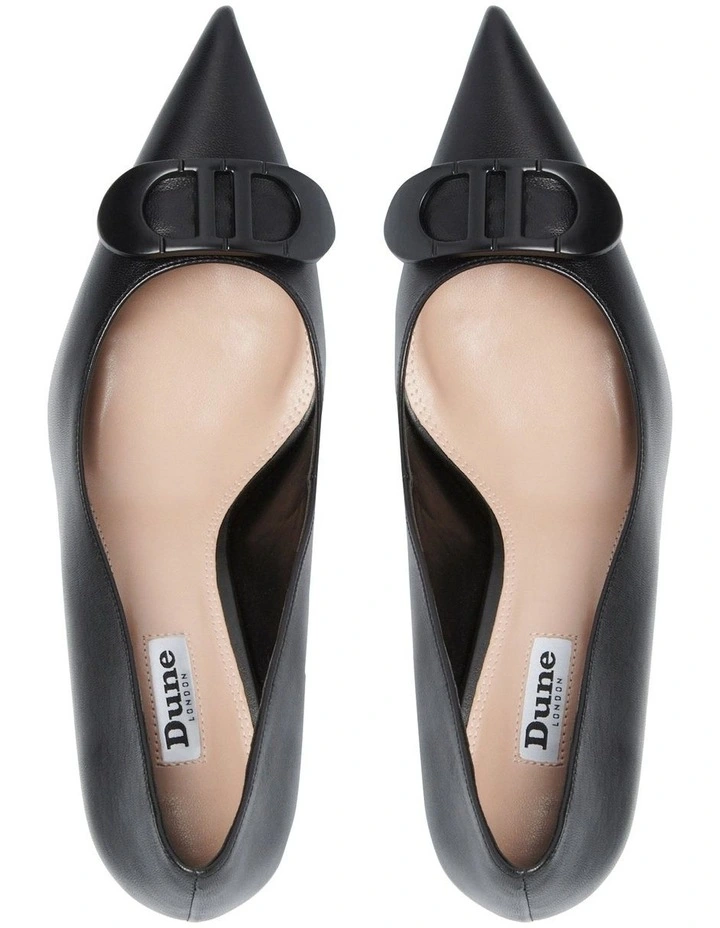 Demand attention in the Brioni stiletto heel from Dune. It rests on a slim stiletto heel and boasts a striking pointed toe. The style is complete with Dune signature hardware detailing.