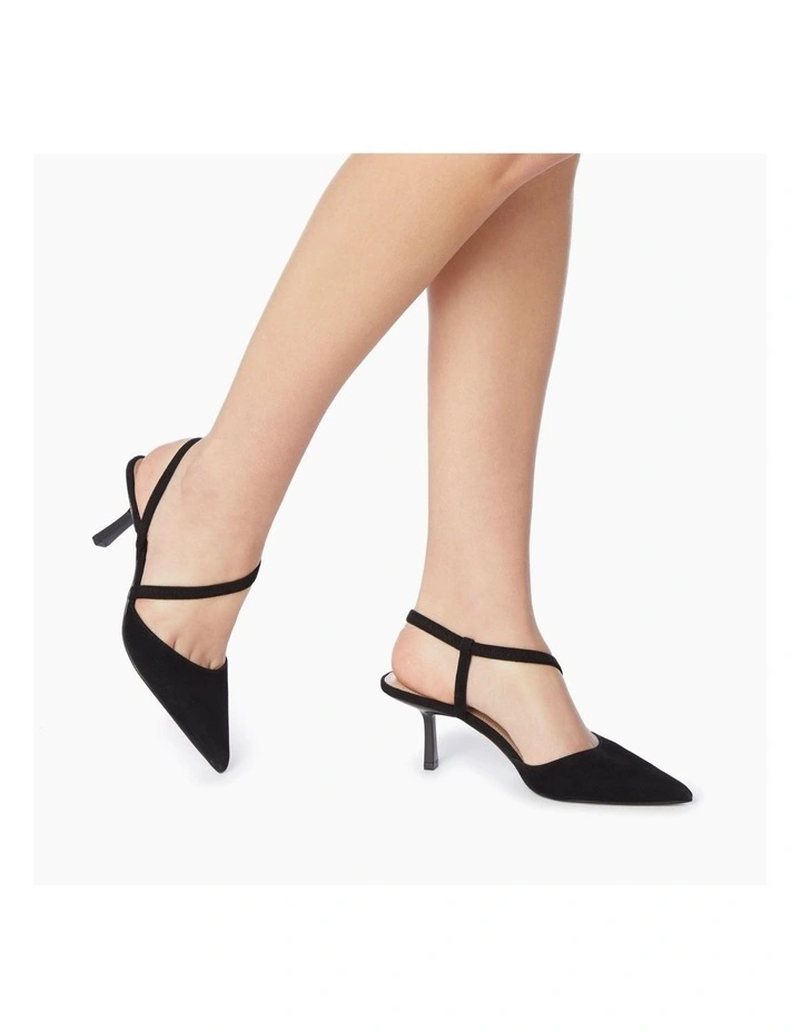 This court shoe is the perfect way to elevate your look with modern charm. Perfect for the day or evening, it rests on a classic kitten heel. It’s complete with a pointed toe and a stylish strappy upper.
