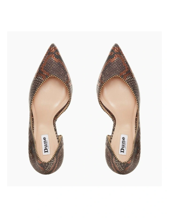 Compliment formal looks with the Dream court shoe from Dune. Cut from suede it’s shaped with a pointed toe. While gold metal embellishments decorate it.
