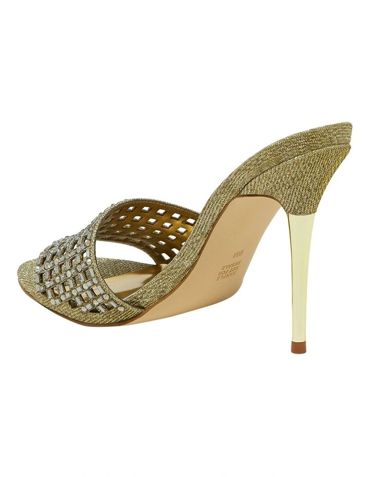 The Mably gold heels by GUESS are a sophisticated way to ground any look. Finished with an inherent sparkle, timeless silhouette and detailed toe strap, these stiletto heels will bring a touch of glamour with every wear. Style yours with a tailored mini-dress or an evening gown to complete the look.