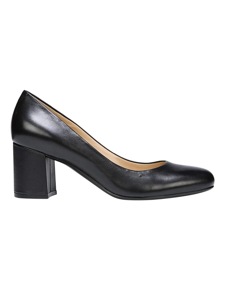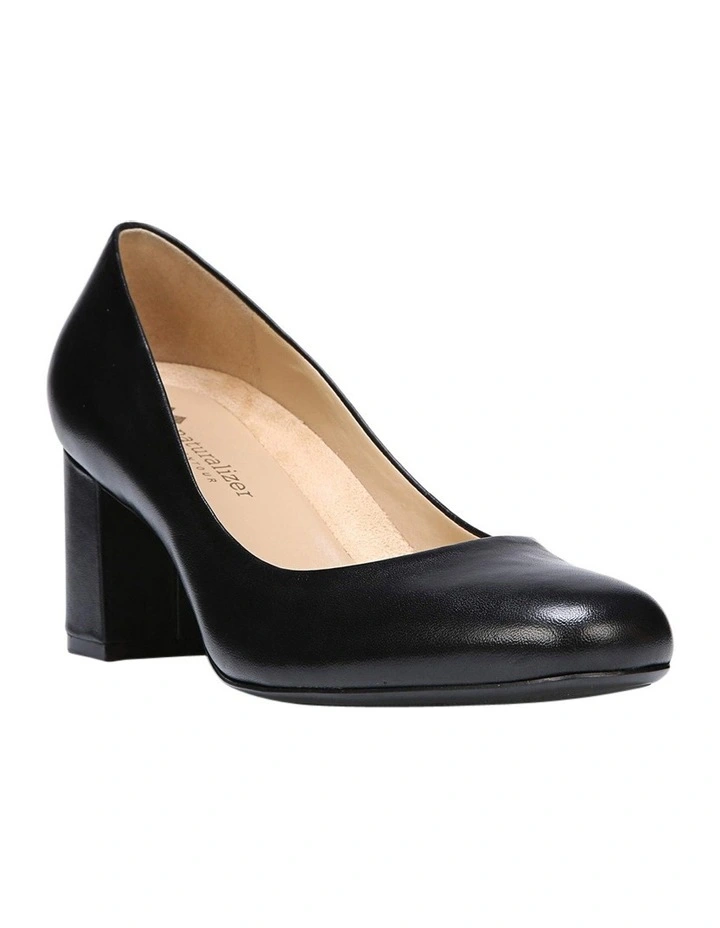 Naturalizer Whitney Black Pump. Easy elegance. The block heel pump from our Modern Icon collection is an undeniable closet essential. Leather, suede or fabric upper, Round toe, N5 Contour technology, Non-slip outsole for stability, 2 1/2 inch block heel.