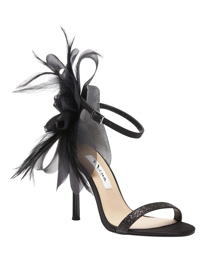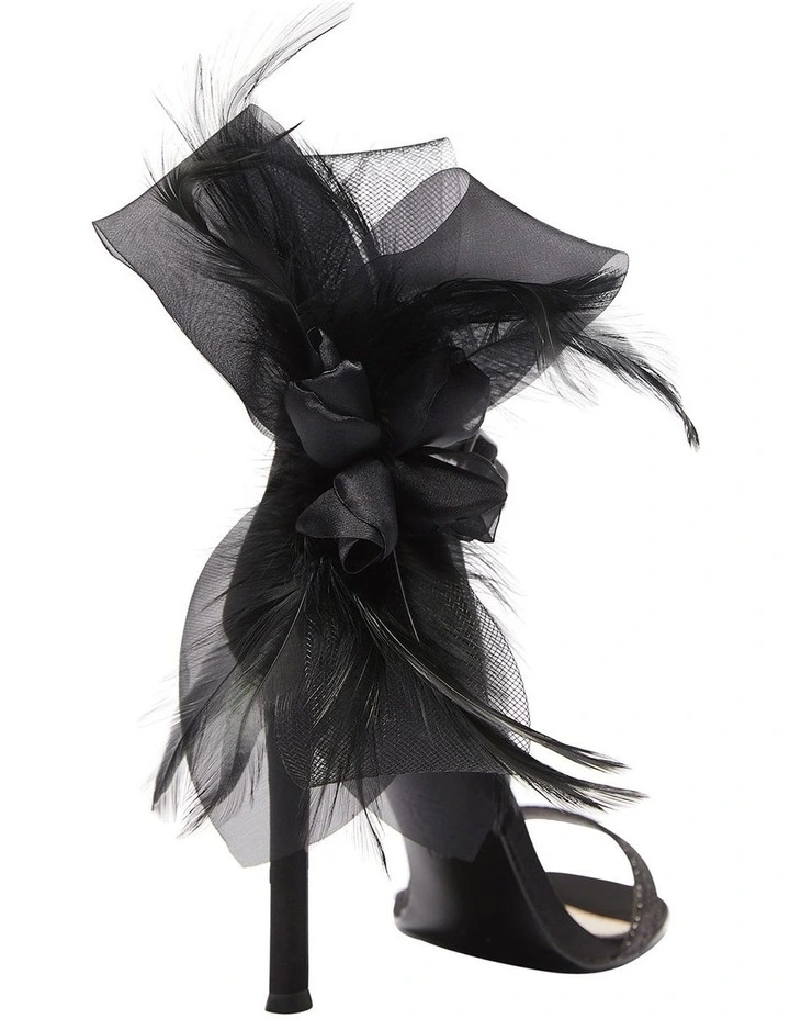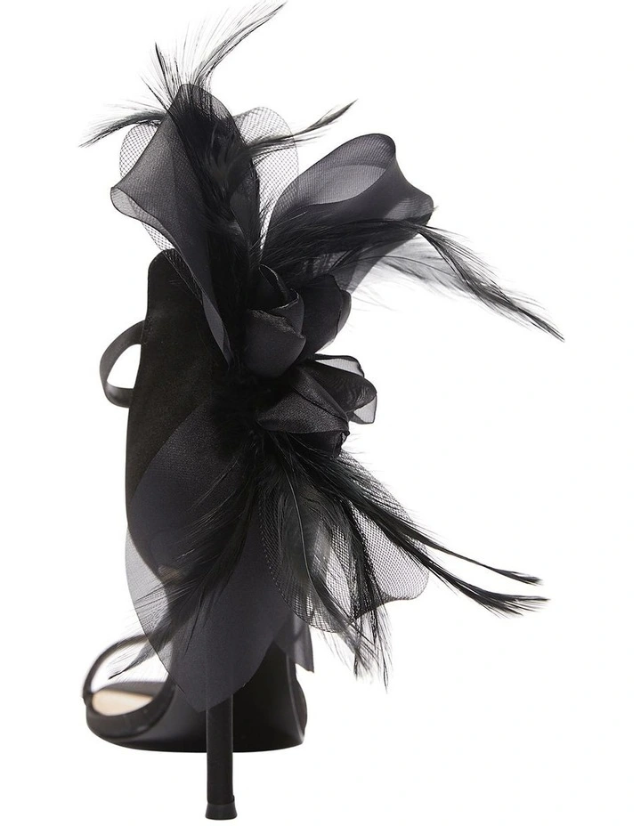 Made for a dramatic finish, DOLLYE is the stand out style that features flowers and feathers to complete any high glamour look. They’re crafted with a single strap across the front vamp and set on a stiletto heel, then fastened with an adjustable ankle strap.Β