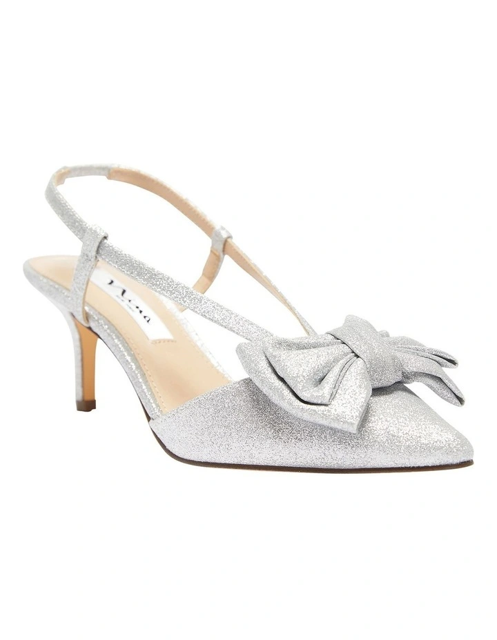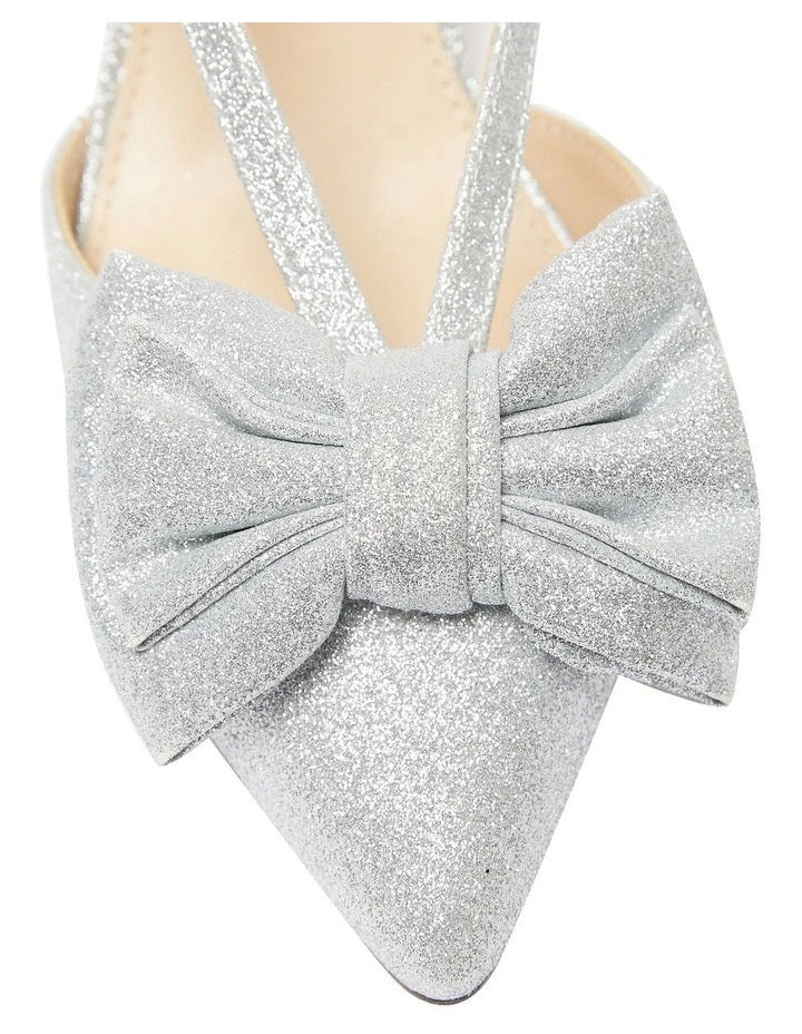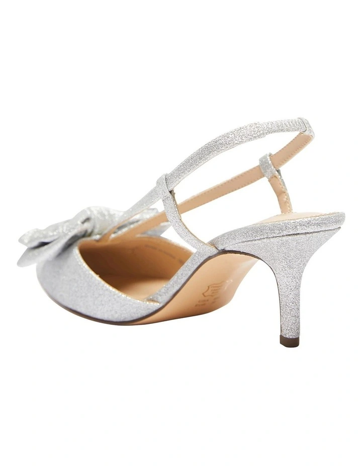 These elegant point-toe satin slingbacks are adorned with a pretty bow sitting at the vamp. A most classically feminine pump.