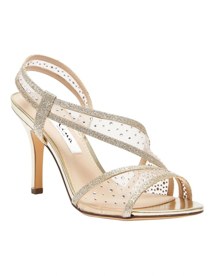 Be prepared for any wedding or special occasion with these glossy sandals with cross over straps for a contemporary vibe and comfortable low heel.