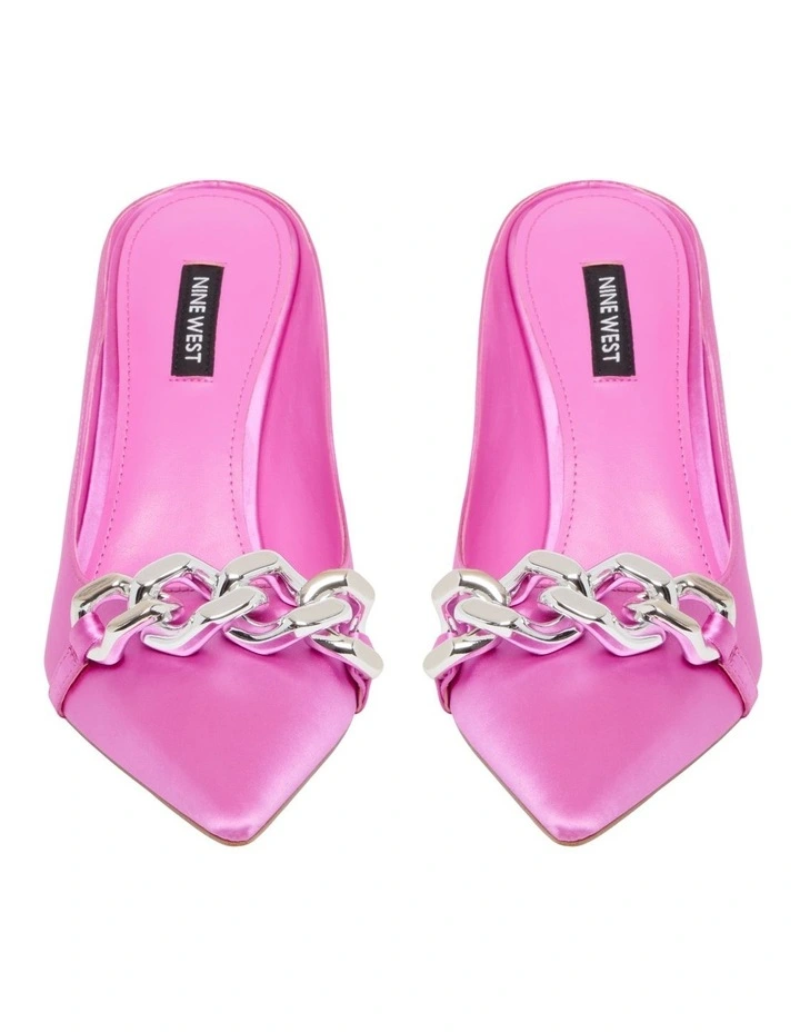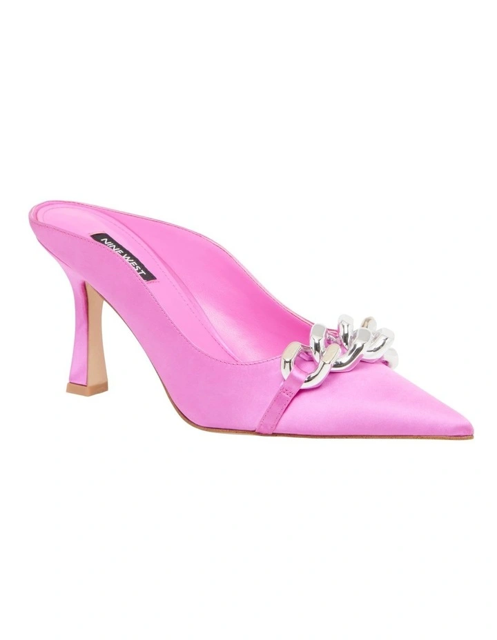 Make a commotion for the fanciest fit of the social season, the Sauci Pump. This statement heel, available in a palette of mood boosting brights, features a stiletto heel, plush footbed and open back design. The electrifying pop of colour is complimented by the contrasting chunky chain detail which rests on the pointed toe. Sauci elegantly elongates your silhouette while enhancing your celebratory ensemble creating a polished finish.
