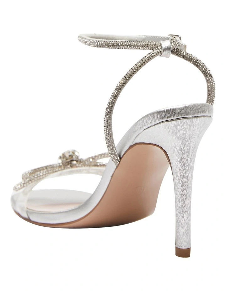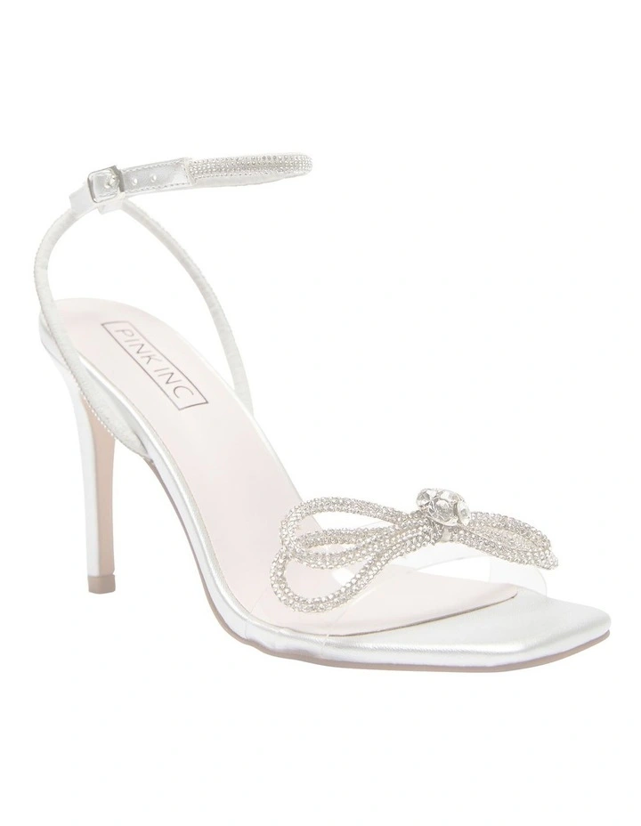 HOLLY marries a striking silhouette with opulent touches to create these stand out stiletto heels. Theyre crafted to an open squared toe heel and a clear PVC front strap for a barely there effect, then adorned with a sparkling bow and countless crystals silhouetting the slender adjustable strap. Style them with any evening wear as the main accessory to your outfit.Β