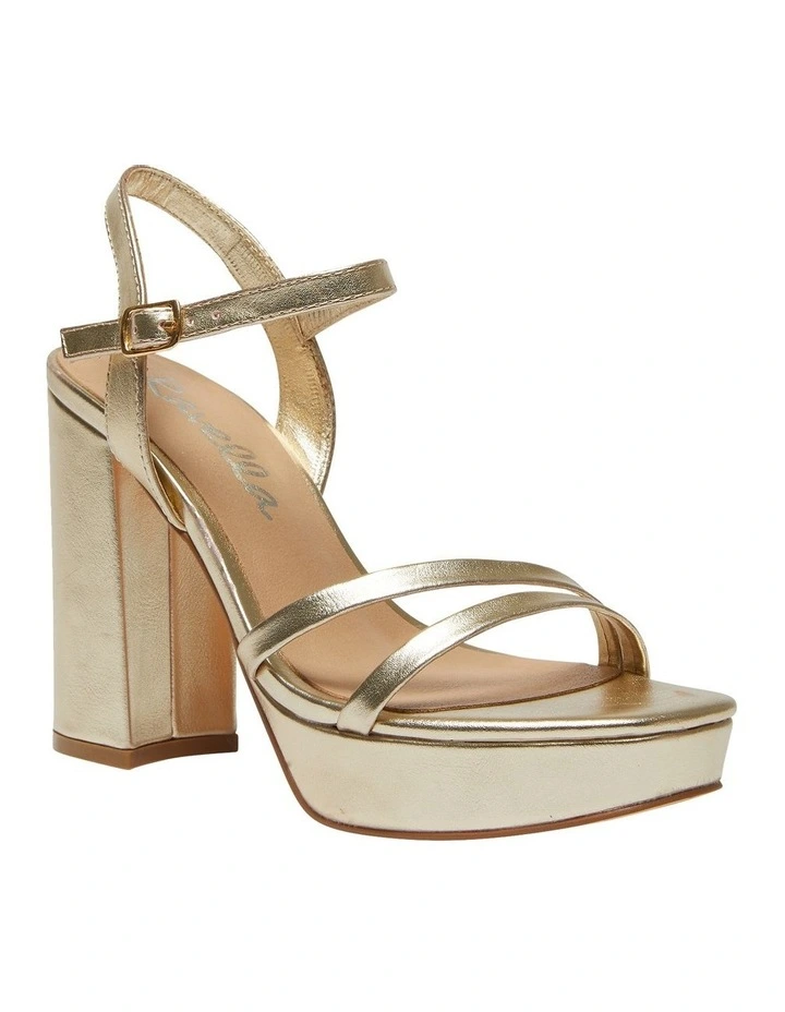 Effortlessly combining elegance and sass, LULU by Ravella is a chic platform heeled sandal. Adorning twin slender straps atop a tubular block heel and sleek platform, it finishes with a silver-toned buckle clasping an adjustable ankle strap. To complete a fierce look, pair yours with a mini dress.Β