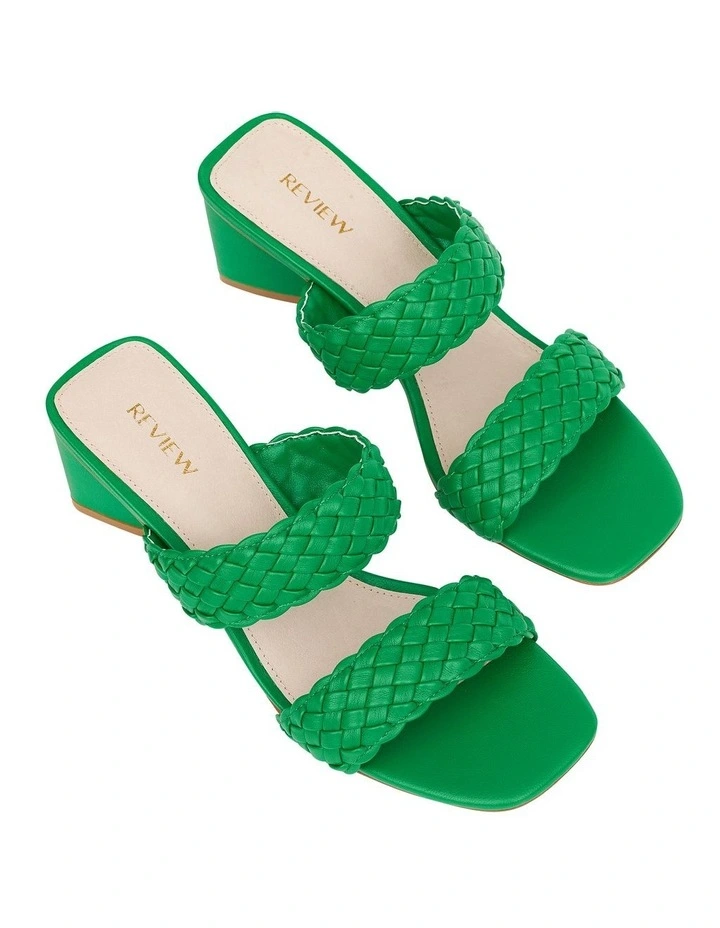 Features: Designed in Australia, Faux leather, Slip-on heel, Braided straps, Block heel