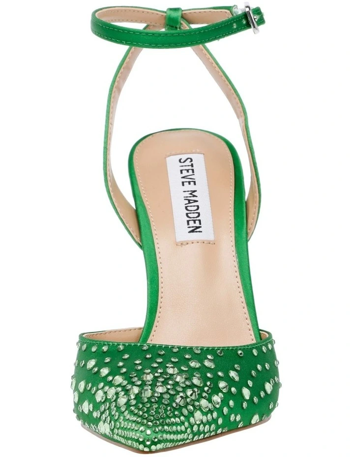 Fancy some fun? Revert heels in green are your ticket. These satin pumps are styled with a sophisticated pointed toe, sky-high stiletto heel and classy stone embellishments to create a showstopping addition to any outfit. It’s the perfect balance of fun and function.