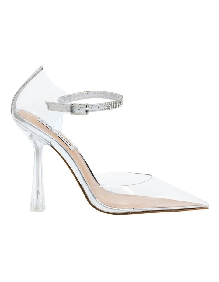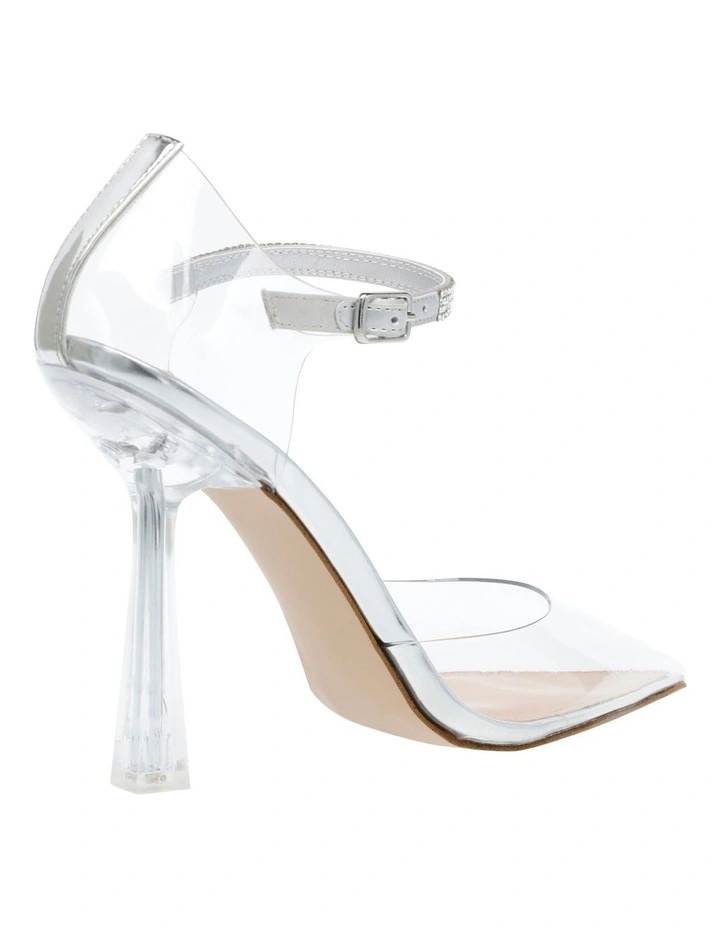 This on-trend pump has been reimagined in a sleek and minimal clear design. The ankle strap and towering heel elongate the leg, proving this heels best-seller status has good reason.