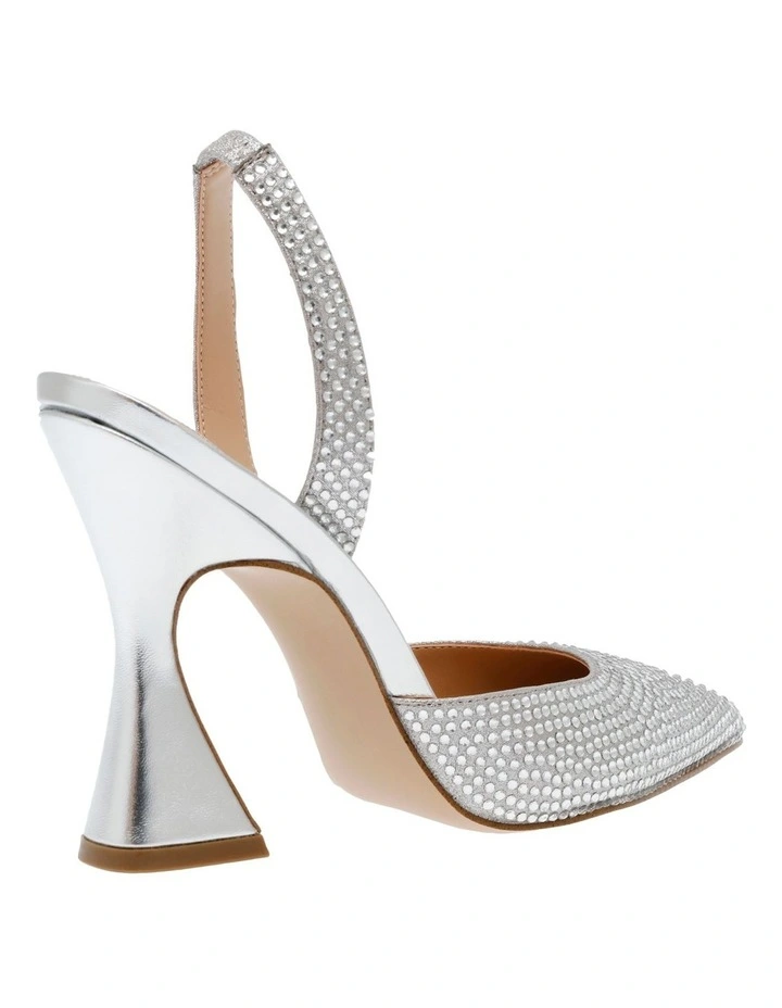ZIRA will add a super glamorous touch to your outfit. The metallic diverse heel provides a stable base and the upper covered with Silver rhinestones give this heel a super chic look.