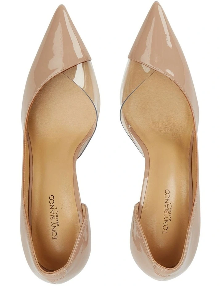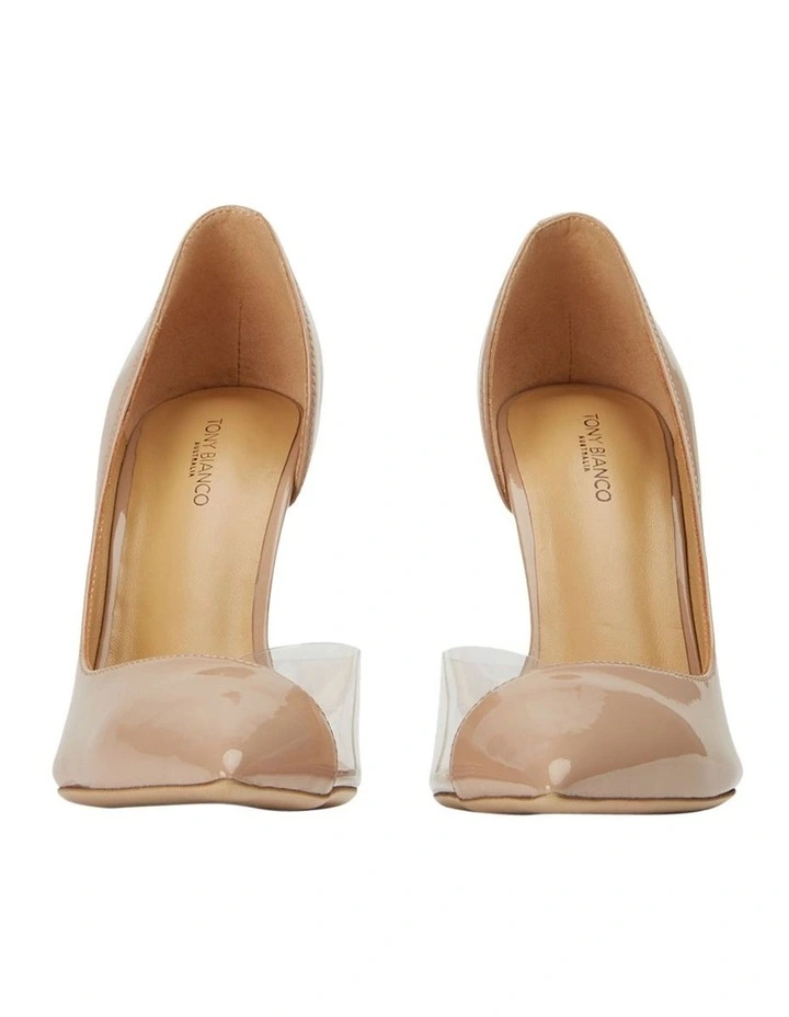 It’s meet me halfway with the Adore leather pump shoes. Featuring an iconic tonal patent leather finish, stiletto heel and pointed-toe, this classic court heel is paired with a layered vinylite upper, giving a smooth interlocking effect to provide the perfect barely-there finish.