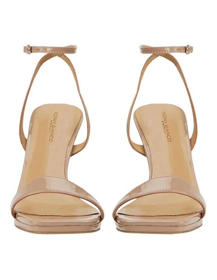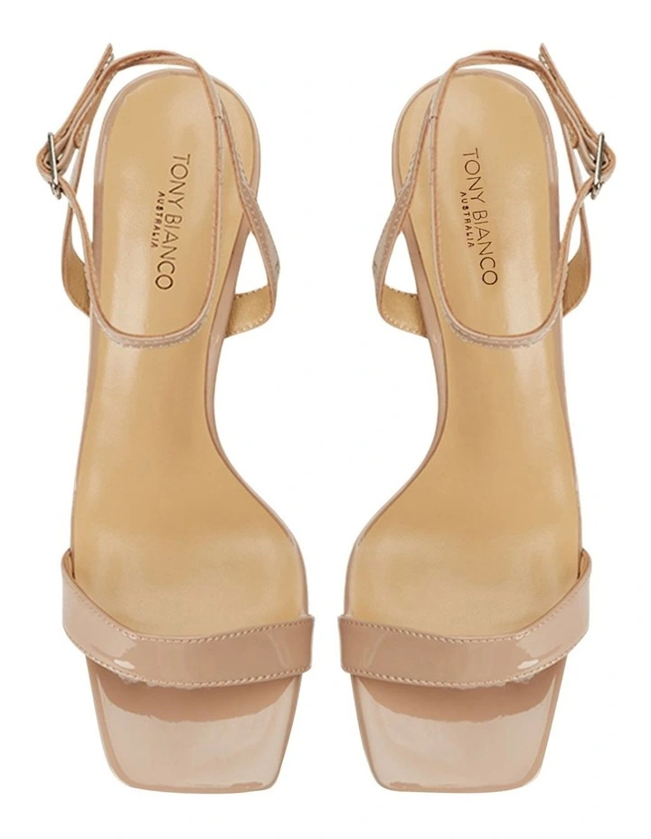 Tres chic! Introducing the French beige patent stiletto heels. Leaning into Parisian simplicity, the towering heel, subtle platform and slender straps make this a timeless piece for tran-seasonal versatility.
