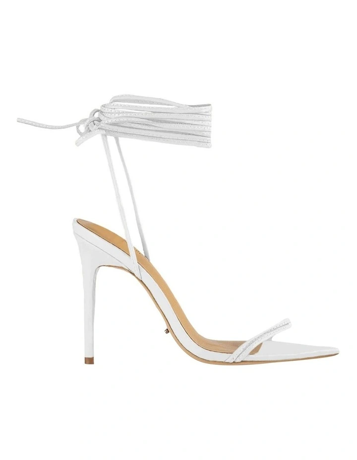 Set yourself up for some vibes with our Millie lace-up strappy heels in white leather. Showcasing slender straps across the foot and a wrap-around ankle design, this style features a pointed toe-shape and a thin stiletto heel and is finished with a leather upper and quality leather lining.